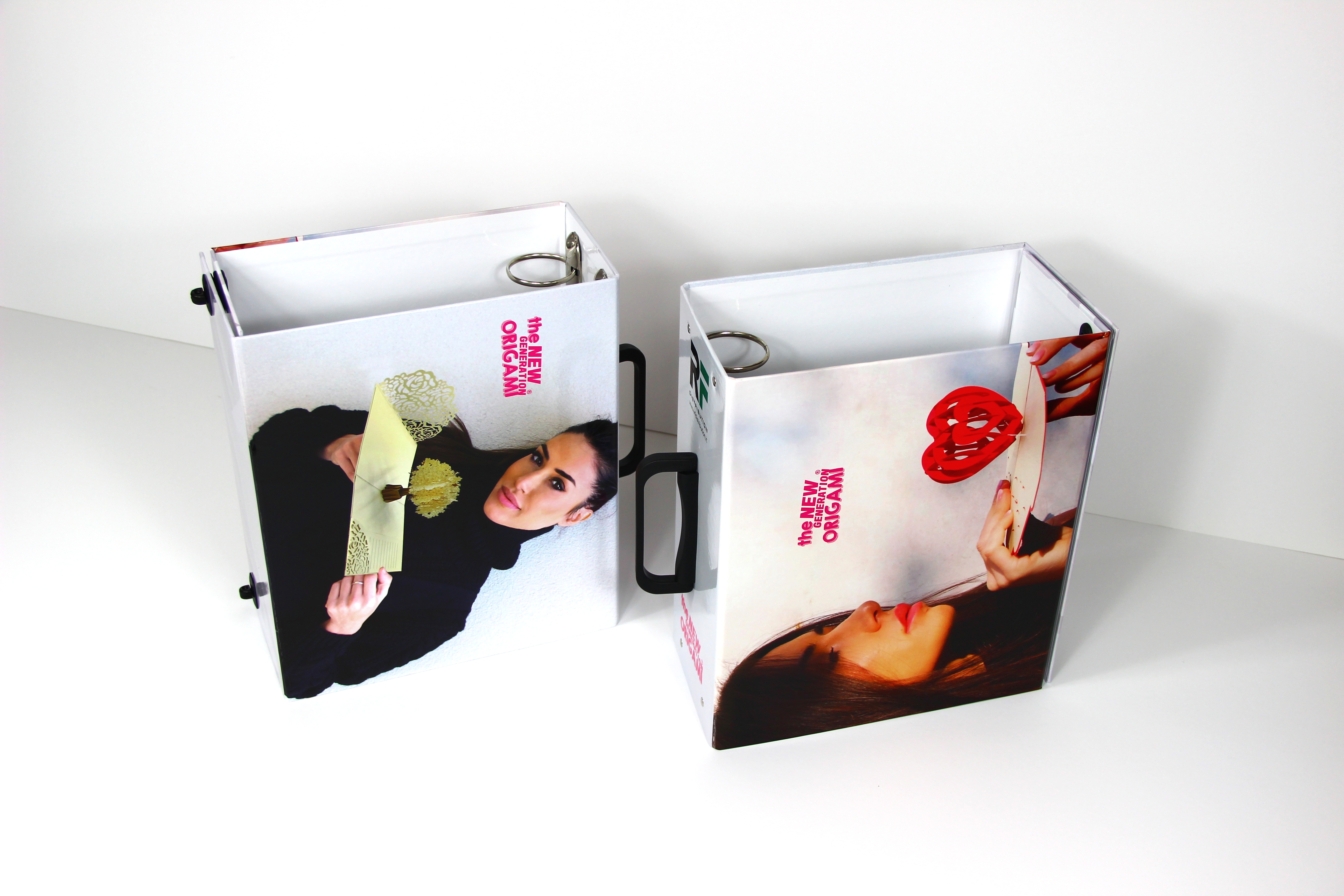 A due o più ante, a valigetta, rivestiti in carta stampata, in carta tinta unita, in finta pelle, in tela, personalizzati con stampa a caldo.